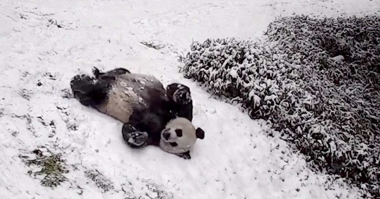 For eagle-eyed watchers of the Smithsonian live cams — cameras set up at several of the exhibits at the Smithsonian Zoo, especially including the panda habitat — the chance to watch a couple of pandas frolic in the snow couldn’t be missed. And while the Smithsonian live stream is still up and running (and, dare we say, a good way to pass the time as you’re stuck inside in between bouts of snowball fights) and there’s plenty of opportunities to keep an eye to see if the pandas get into their own snowball fights, the Smithsonian Zoo has stepped in to make things easier. They edited a minute-long clip of the pandas slipping, sliding, and using their bodies to sled in the enclosure. They are rolling about and having a great time in the weather and it’s really too cute to be missed.