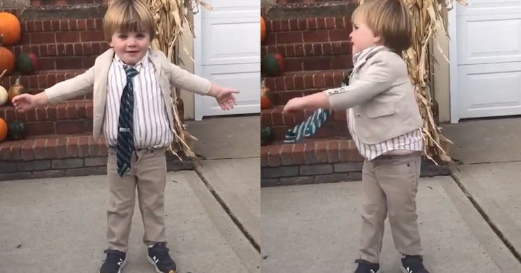 The enterprising young man (or, more likely, his parents) decided to dress up as Farley in Tommy Boy for Halloween this year, so doing his own rendition of “Fat Guy in a Little Coat” was an essential move.