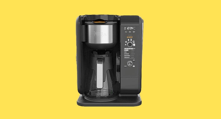 The Ninja coffee maker lets you brew multiple brew sizes, from a cup to a carafe. You can whip up hot or cold coffee. Or iced tea. It even has a built-in frother that works with hot or cold milk.