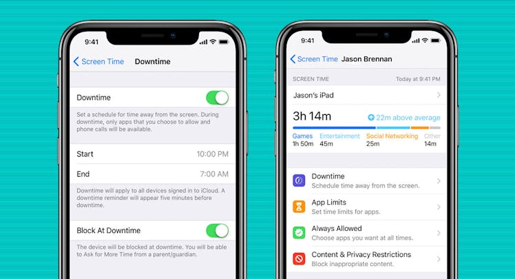Screen Time also allows you to schedule chunks of time when you want to restrict access to a child’s device. During the indicated time, push notifications are prevented from displaying on the home screen and all apps are locked. You can, however, “whitelist” a few apps that always be accessed, even during downtime. This means that your kids can still access classroom-required apps so they can, say, complete assignments during a homework time app-freeze.