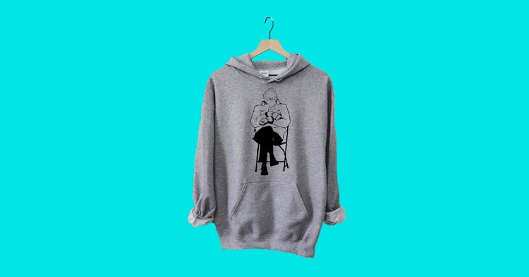 Bernie Sanders knows how to be a meme. It doesn’t take much, considering his strong Brooklyn accent, his hilarious Jewish affectivity, and his all around no-fucks-given attitude. But the best meme yet may have come out of this week’s inauguration, when the Vermont Senator was caught sitting cross-legged and bundled up in a bulky coat and handmade mittens to brave the cold Washington D.C. air, looking like the inauguration was another errand on his to-do list. A photo of Sanders, taken by Brendan Smialowski for Getty, quickly became a viral meme, and now the Bernie meme has become merch, as people make T-shirts, sweatshirts, mugs, and other things to celebrate the iconic former presidential candidate. These are the best Bernie-meme products we found.