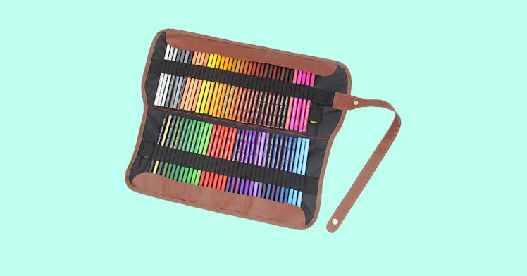 These 72 pencils cover 48 different colors, number coded individually so kids don’t, for instance, confuse slate and dark grey. The included canvas bag has two rows of individual slots for each pencil and can be folded and then rolled to about the size of a dopp kit or simply rolled for a longer, slimmer profile.