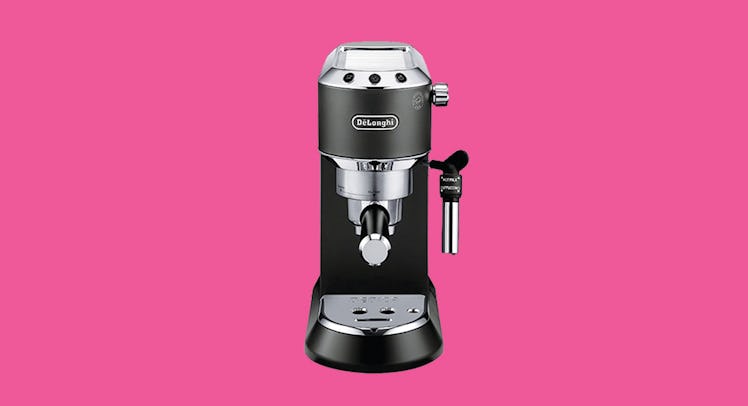 Pros: The black and chrome espresso machine, has just three illuminated buttons, so it’s also dead simple to use. Its slim profile (13 inches tall by just 6 inches wide) means it will fit just about anywhere and it’s easy to remove the water tank for refills. The basket can hold enough grounds for two drinks at once. It’s also compatible with E.S.E Pods (the non-plastic variety, the only kind of pod you should consider using). If cappuccinos are more your style, the manual frothing wand makes it easy to whip up some foam quickly. “This is a decent machine will make good coffee, but probably won’t last more than three years depending on how much you use it,” says LittleJohn. At less than $300, however, it’s worth picking up if you’re not sure how much use you’ll get out of an espresso machine.