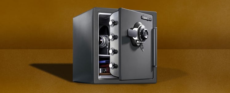 The best advice is to buy a small biometric safe that only works with your fingerprint instead of one that uses a key or combination. Larger lockable safes can also be a convenient way to store valuables like cash, jewelry, passports, and other important documents. But if you have the space, a dedicated space stored discreetly in a closet is also a good option.