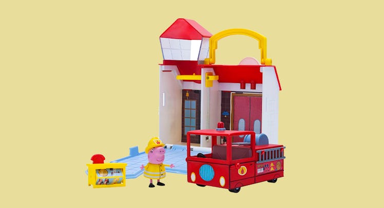 This set, suitable for kids three and up, includes the firehouse, the fire engine, and firefighters Peppa and Mummy Pig.