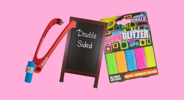 Sidewalk chalking is a true-tested summer pastime. What kid doesn’t get a kick out of doodling on the driveway or drawing a massive tic-tac-toe or four-square board with a big fat piece of chalk? (Admit it, you still pick up a stick and draw the Stussy “S” next to whatever your kid is sketching on your pavement.) If your kids love to chalk that walk, then there’s much more out there than a standard stick. We’re talking everything from spray paint chalk and funky chalk-holding rakes to glittery chalk and best of all dustless chalk that doesn’t leave your kids’ hands messy. Bonus: They’re all water-based, so you can wash them right off. Without further ado, here are the best sidewalk chalk and sidewalk chalk accessories for kids.
