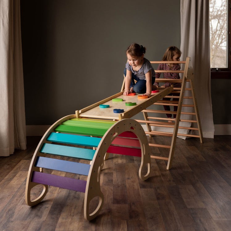 Whether it’s pouring rain or scorching outside, sometimes it’s just not feasible to let your kids play in the great outdoors. But they’ve got to get their wiggles out somehow, and an indoor playset is the perfect way to let them do it. But not all playsets are created equal — many of them are plastic eyesores that you’ll want to take down as soon as the kiddos are tuckered out. Many, but not all: There are a few brands that make playsets that look so good that you’d be proud to give them permanent residence in your home.