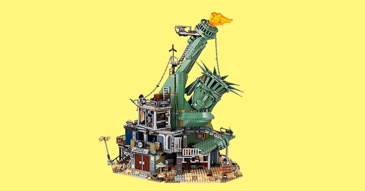 In an homage to Planet of the Apes, the set is a 20-inch tall Statue of Liberty head that Emmett, Lucy, and the rest of the gang from the first film repurposed after the invasion. It’s a modular set, with sections that can be removed for easy play. Rooms include a café, Lucy’s hideout, Fuse’s workshop, and a rooftop diner, among others.