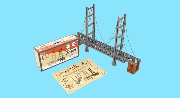There are a handful of kits currently available: a basic 25-piece set that “mimics real life steel connectors” and is designed for younger kids; a detailed 178-piece ship-to-shore container crane with 15 different shaped pieces; a massive Brooklyn Bridge-inspired suspension bridge with more than 620 pieces and tensioned plastic cables that can also be used to build a smaller cable-stayed bridge. Mini Unit Beams are available online and start at $35.