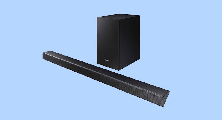 Pros: This Samsung soundbar is a great choice for gamers, because it has game mode to boost your sound effect settings when you’re in the middle of Overwatch or Fornite. It’s easy to set up. And you’ll won’t have your eardrums blown when something you’re watching suddenly goes up in volume, because the soundbar automatically optimizes your sound for what’s on.