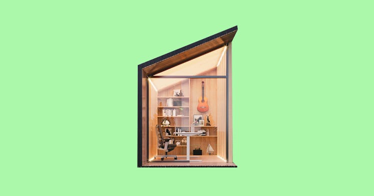 Just look at this pod. Surrounded on three sides by warm oak and walnut wood walls with a fourth made of tempered glass, you’d get plenty of ambient light in which to work. While not big enough for all that much (about seven feet by seven feet, with a ten-foot ceiling at its max height), the Zen Work Pod maximizes the space with built-in shelves and drawers, adjustable-height desk, and ergonomically-designed chair. In fact, the only thing you’d need to add is all the work stuff you’ve currently got strewn around the guest bedroom where you’ve been getting down to business since March.