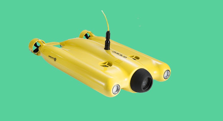 One such drone, the Gladius Advanced Pro, can capture 12 megapixel still images and 4K video. More or less a smaller version of Jacques Cousteau’s mini-submarines, it has dual dimmable LED lights that let you capture footage even as you pilot your drone deeper into the water and an image stabilization algorithm that helps ensure your well-lit footage is smooth.