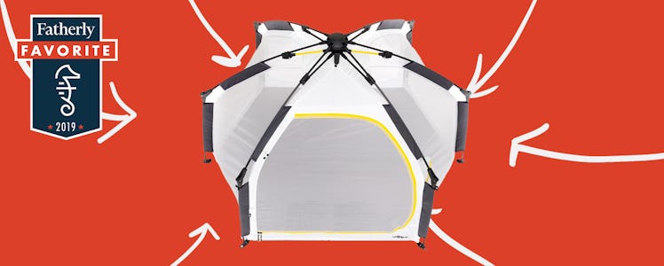 The Basecamp defends from both sun (there’s a removable UPF 50 Sun/Rain cover that offers shade but still helps ventilate on hot day) and insects (the mesh is made to ward of winged things). There’s also two interior on-wall mesh pockets for storage and a specially coated bottom that doesn’t get soggy. The Basecamp is also designed to keep its diminutive inhabitants safe: the JPMA approved shelter has no hard surfaces that kids can knock their heads against and features, among other design niceties, pinch-proof hinges to protect tiny fingers.