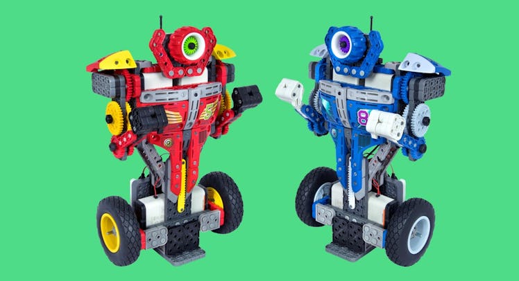 The battling bots are part of Hexbug’s VEX Robotics line which means that kids get that valuable STEM learning as they create the robots out of snap-together components. Once constructed, the robots — one blue and one red — are controlled using a smartphone app. Instead of bobbing and weaving, they roll on wheels. Said wheels, however, are self-balancing so they’ll never topple over in the middle of a bout.