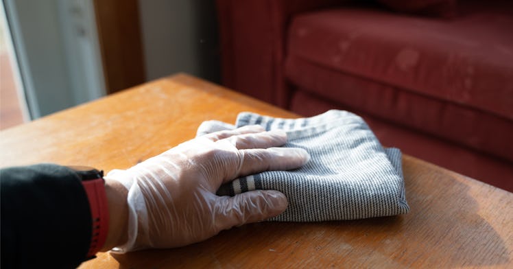 If a surface is visibly dirty, first clean it with a detergent and water. Then, disinfect it with a product that can kill viruses, such as bleach. Even if they look clean, wipe down high-touch surfaces with detergent and water often, including doorknobs, counters, tables, light switches, remote controls, cabinet handles, and sink handles. “The more frequently, the better,” Thomas says, but at least once daily. Use disposable gloves while cleaning, and don’t reuse them.