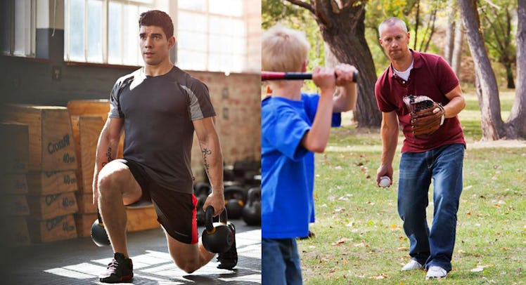 These seven movements are as essential to you as they were to our large-browed ancestors, as they’re a basis for just about every movement we make. “When you perform these seven exercises on a regular basis, you reap benefits that are both aesthetic and functional,” says Chris Stevenson, CSCS, owner of Stevenson Fitness in Oak Park, California. “First, you have the ability and energy to do what you want with your children, without restriction. Second, you’ll be chipping away at the ‘Dad Bod’, all while encouraging your body to function properly.”