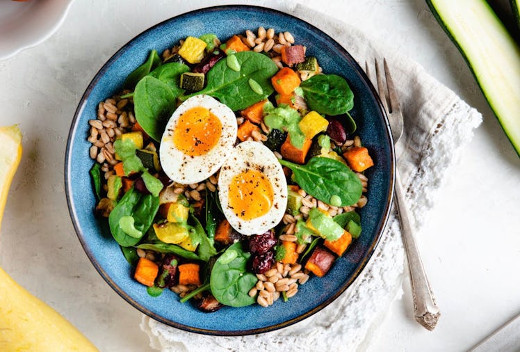 My favorite thing to do with eggs is to poach them. When punctured, the runny yolk of a poached egg becomes a rich, nutrient-dense sauce for whatever dish you put it on. The classic poached egg recipe is eggs benedict, but they’re also great on savory oatmeal and salads. Topping something with a poached egg is a simple, tasty way to round out your diet with key nutrients.