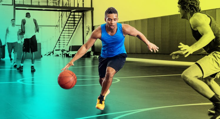 For some guys, the structure and routine of hitting the gym is exactly what they need to keep their fitness on track. For others, it’s a slog. The space is dark, the treadmills relentless, and the music mind-numbing. You’d rather be outside, shooting hoops with your boys. Which, actually, you should be, since a pick-up game of basketball burns more calories and builds more muscles than any 30-minute session on the elliptical ever could.