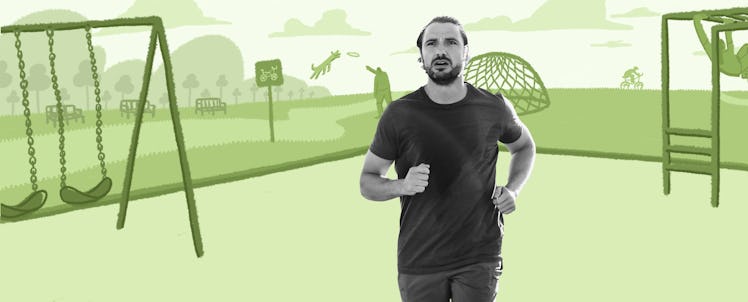 The beauty of hills is that they work more muscles than running at zero incline and raise your heart rate up without requiring additional pavement pounding. For this workout, find a steep-ish hill that you can sprint up for at least 10 seconds. Dash to the top and jog to the bottom. Repeat 10 times. That’s it.