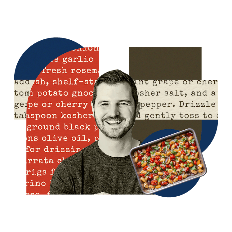 Unsurprisingly, Freeman chose a pasta dish to share for his “Dad Special” that’s inspired by his family: Sheet-pan Caprese Gnocchi. A quick, flavorful weeknight meal, it comes together in about 20 minutes. Shelf-stable gnocchi and garlicky cherry tomatoes are roasted in the oven before being mixed with basil, mozzarella, and balsamic dressing. The gnocchi crisp up and the tomatoes become jammy; the basil, balsamic, and cheese bring it together. It’s simple, refreshing, and perfect for the season.