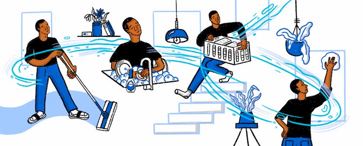 - Clean when your partner is cleaning to maximize the time your non-chore time together. You can call it a life hack, but it’s really just common sense.