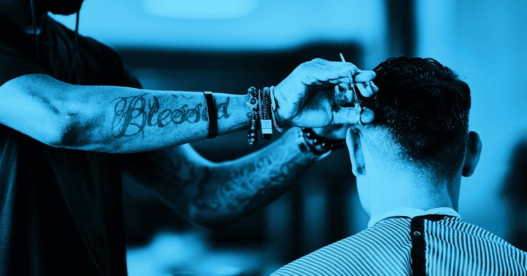 If and when you shave it yourself at home, you must follow a very specific process to avoid cuts and irritation. “Start after a hot shower, then trim your hair down with a set of clippers,” says Rachel. “Apply shave cream to the entire area to soften follicles. Begin by shaving with the grain, applying little pressure in even strokes. The razor should do all the work.” After this, you’ll move to the coarser areas. Pull the skin taut, especially the back of the head, since it tends to hang looser there. (For this, you’ll need a hand mirror.) After the shave, splash cool water across the scalp — same as when you shave your face — to close your pores. An aftershave balm can help lock in moisture and prevent breakouts and ingrown hairs, too.