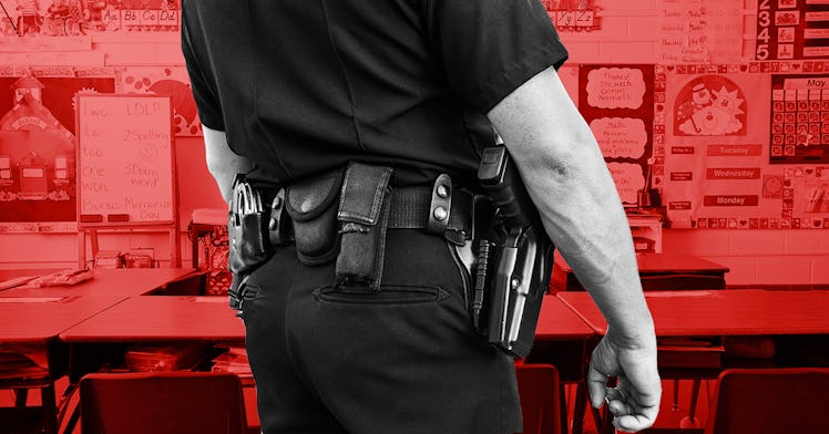 Some tens of thousands of cops and security guards roam the halls of America’s 100,000-ish public schools. Schools that are majority black or hispanic students are more heavily policed. In the Southern and mid-Atlantic states, more than 90 percent of public high school students attend a school that has a police officer.