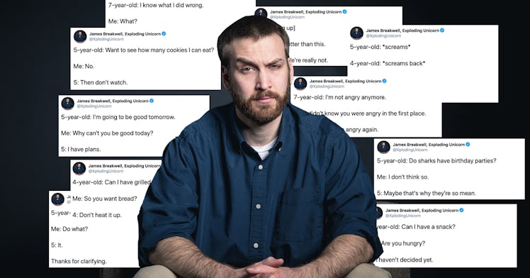 James Breakwell understands this. Better known by his Twitter handle @XplodingUnicorn, Breakwell is the Internet’s patron saint of funny parenting tweets. The comedian, author, and father of four daughters has amassed more than 1 million followers by firing off relatable, genuinely funny tweets about fatherhood and basically defined a often-imitated (but rarely replicated) dad joke style.