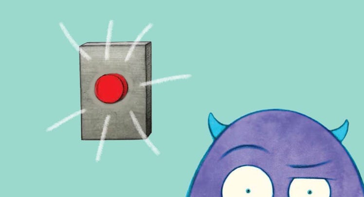 My 2-year-old sits on my lap, eagerly pushing a picture of a red button. The button appears on every page of the children’s book Don’t Push The Button, a story about a purple monster named Larry that goads kids into pushing a button that they’re not supposed to push. Larry opens with a cautious preamble (“There is only one rule. DON’T push the button”; “No! We can’t! We mustn’t!”), but then he levels with his juvenile readers. “Psst! No one is looking. You should give the button one little push.”