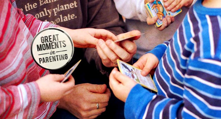 Anyway, my neighbor tells me that after Timothy walks away, she’s about to go over and talk to him and get to the bottom of the issue. But then she sees my son. He was playing catch with a few other kids and ran over to talk to Timothy. And this is what my boy does: he reaches into his pocket and gives him his own trading cards. Then, the two of them walked over to the crowd of boys, says something, shows them the cards, has Timothy show his, and he and Timothy sat and played.