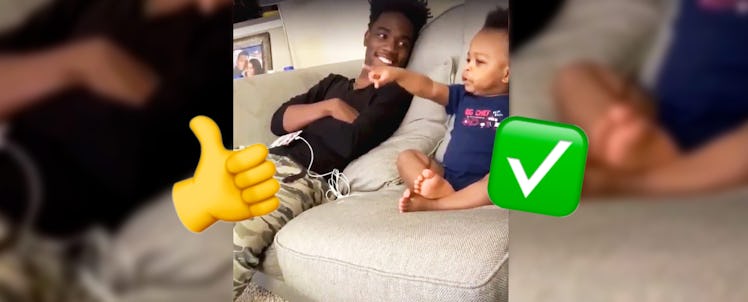 The video, which shows a father watching TV and having a gibberish conversation with his baby, is very cute — and shows a kid developing a firm grasp of language.