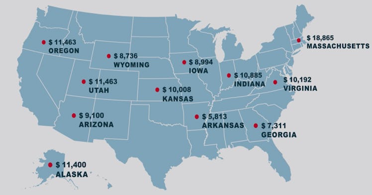 Obviously, these regulations are a good thing ⏤ nobody wants to drop their kid at a center where one adult watches 15 two-year-olds ⏤ but they also cost a lot of money in salaries. In the video’s hypothetical, the center has $260,000 left after covering other expenses. It looks like a large number until you realize it has to, by law, be divvied up among 10 full-time employees across three classrooms: a director who makes $22 an hour, three lead teachers at $13 per hour, and six assistant teachers who make $10.50 per hour.