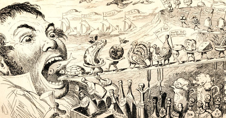 The question I never asked at the time was this: why? Why did we do these things? Who doesn’t know that guy who wants to prove his worth by taking down three dozen XXX spice wings? But why are hot dog-, hot wing-, and chili-eating contests attended by thousands of eager fans every year? Why do men place such a premium on how much they can consume? With Thanksgiving, the most gluttonous of national holidays, approaching, I’m belatedly circling back to the query. Why do men take such pride stuffing themselves?