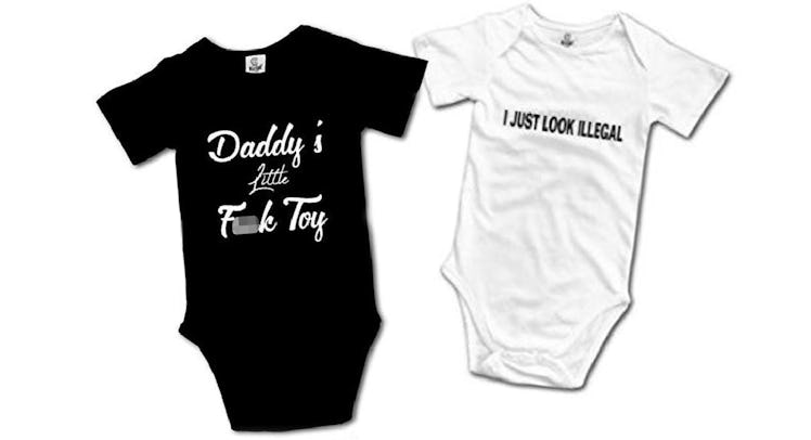 On Amazon’s American site, the news outlet found two infant onesies for sale with disgusting slogans. The black onesie read “Daddy’s little fuck toy” while the white one read “I just look illegal.” Both retailed for about $20 and were sized for babies up to 24 months old.