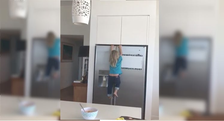 Yesterday, actor Chris Hemsworth took a break from getting swole to shoot an Instagram video of one of his oddly powerful young twins effortlessly scaling the family fridge like it was a custom-made climbing toy to reach the snack cupboard above. The video is impressive to watch not just because the long-haired kid seems to have remarkable grip strength for a three year old, but because he seems to have very real determination.