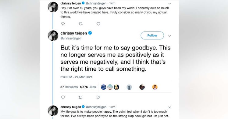 On March 24, 2021, Chrissy took to Twitter, sharing that she was stepping away from the platform. “Hey. For over 10 years, you guys have been my world. I honestly owe so much to this world we have created here,” Chrissy began a Twitter thread. Adding, “I truly consider so many of you my actual friends.”