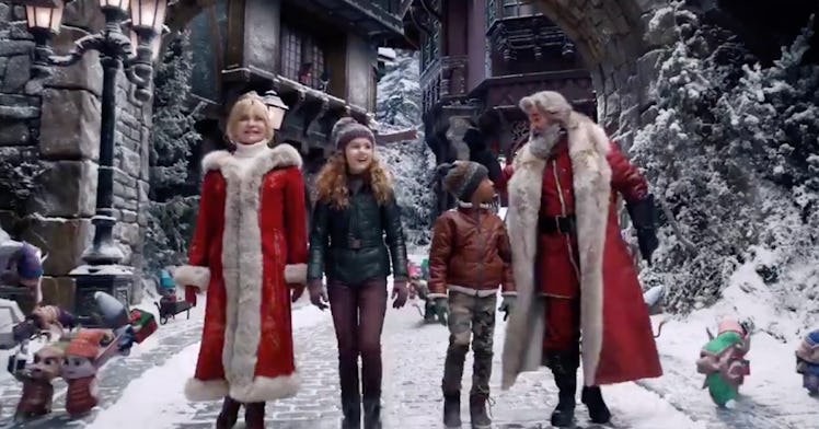 A short clip posted to the Netflix Twitter account shows the couple and two kids walking through Santa’s Village. It’s what you’d expect a CGI version of the North Pole to look like: a massive tree and ice skating rink that puts Rockefeller Center to shame, a perfect dusting of snow on every surface, picturesque mountainous backdrop, and only slightly creepy elves.