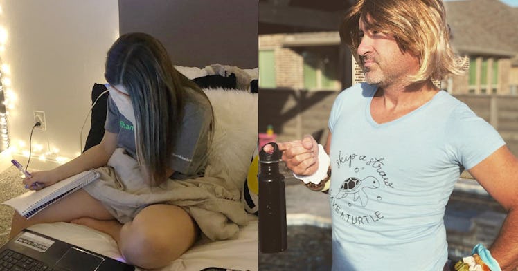 That was tame compared to what was to come. Dad decided to dress up as his VSCO girl daughter for his next post.
