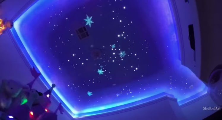 Along with the mood lighting and mock Disney castle in the corner, the most stunning part of Coram’s project is the ceiling, which serves as a display for a handful of fantastical imagery. Done with a projector, images on the ceiling can recreate the massive fireworks display that takes place every day at Disney theme parks all over the world. Coram injected another layer of realism by painting the ceiling to look like the night sky.