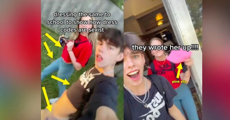 Two high school students set out to prove a point at their school in a now-viral TikTok that makes a serious point: dress codes are sexist and full of double standards. Those double standards primarily impact girls.