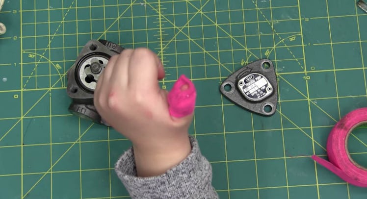 Off-camera, a concerned Hein can be heard kissing his daughters injury, before she asks him about the pump on the table. In true dad fashion, Hein dives into a short–albeit dry–explanation, before realizing his daughter is more preoccupied with her hurt thumb than the trochoid pump. Hein goes on to wrap her thumb in some engineering tape, before the pair finishes re-assembling the pump together. In true, adorable child fashion, his daughter proudly shows off her thumb to camera: “Look at my Band-Aid, boys and girls!”