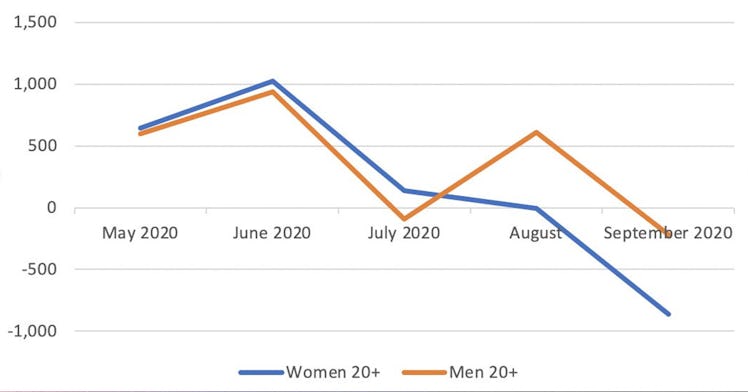 Chart Shows Hundreds Of Thousands More Women Than Men Have Left The Workplace During COVID-19