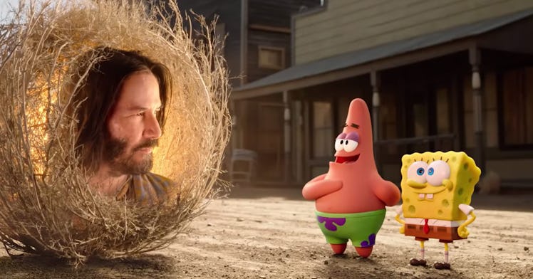 The trailer for the third SpongeBob movie to hit theaters, The SpongeBob Movie: Sponge on the Run dropped today and a cameo of a familiar face to fans of John Wick, Speed, and Always Be My Maybe graced the trailer. That’s right: Keanu Reeves, potentially the internet’s favorite actor who was recently praised for dating an age-appropriate woman, snagged a part as a wise bundle of sage that looks a lot like tumbleweed, giving great wisdom to Patrick and SpongeBob as they look for Gary, SpongeBob’s pet snail.
