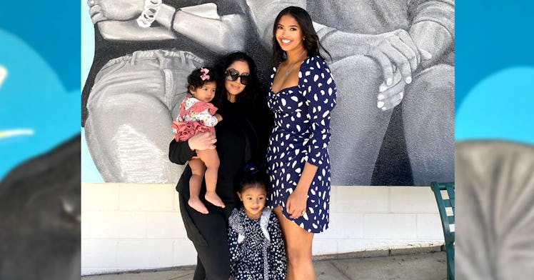 Natalia Diamante, 17, and Bianka Bella, 3, stand next to their mom holding Cari Kobe, who will turn two in June. Vanessa included the lyrics to “Smile,” a song made famous by Nat King Cole, and an appropriate choice considering that everyone in the photo is smiling despite their grief.