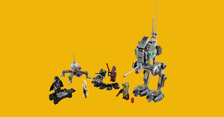 The biggest set in this collection in Slave I, a 1,007-piece version of Boba Fett’s personal ship. The red, green, and gray craft has triggers that fire spring-loaded shooters and a carbonite-ensconced Han Solo in the cargo hold. The collectible figure that comes with this $120 set? Princess Leia, carrying a blaster and rocking the best haircut in the galaxy.
