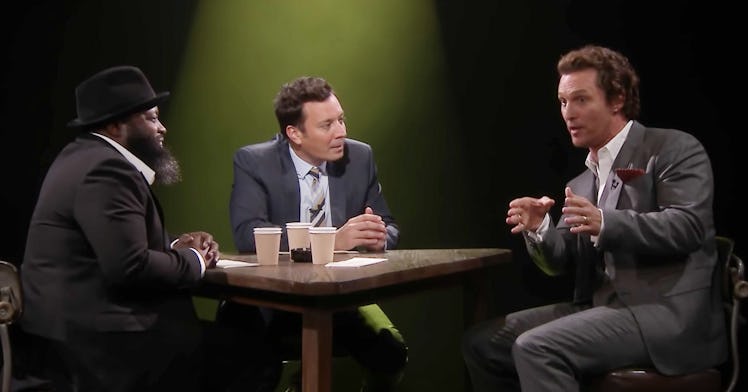 While Black Thought presumed it was a lie, because it seriously sounds like one, Fallon couldn’t shake his suspicion that the story was true. When the buzzer rang to signal the end of McConaughey’s story, and after a little fake out, the actor admitted that the whole thing was totally true. Apparently, his dog BJ was antagonizing the ram first.