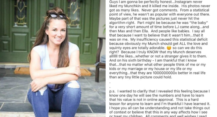“Guys I am gonna be perfectly honest. Instagram never liked my Munchkin and it killed me inside. His photos never got as many likes. Never got comments,” she wrote, going on to say, “From a statistical point of view, he wasn’t as popular with everyone out there.”