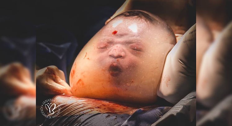 Brith photographer Janaina Oliveira captured it all in a series of photos that are now going viral on social media. “It was an incredible moment for the whole team,” Oliveira told CafeMom. “Even though we have seen [en-caul] deliveries, none was like Noah’s—he was making a face and pouting!”
