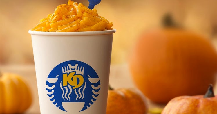 The pumpkin spice variety of KD incorporates the cinnamon, allspice, ginger, nutmeg, and cloves into its standard cheese powder. The promotional photos of the stuff show it being served in a coffee cup, a nod to the popularity of the flavor in coffee-based concoctions.