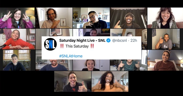 The SNL Twitter account celebrated the news with a screenshot of a cast member Zoom call with about half flashing thumbs up along with #SNLAtHome.